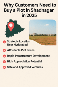 Why Customers Need to Buy a Plot in Shadnagar in 2025: The Fastest growing Investment Zone in Hyderabad Shadnagar is one of the most flourishing real estate locations in the state of Telengana, Shadnagar has excellent and strategic position benefits, quick infrastructural development, and low-cost real estate, making it one of the top picks for prospective home purchasers and investors looking to put their money somewhere for the long-term. Shadnagar is one of the best value locations now, especially for those needing to park money in land for value appreciation over time, because of the strong demand for affordable land in Shadnagar.